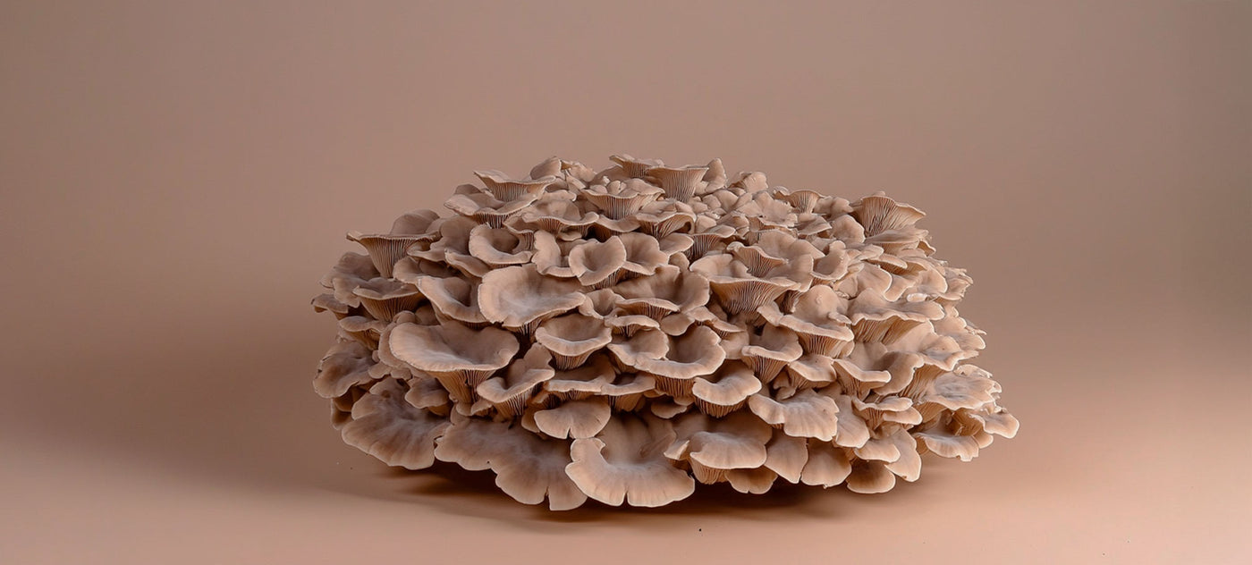Umbellatus belongs to the order Poriales, the family Poriaceae, and the genus Grifola, which it shares with Maitake (Grifola frondosa). This variety is saprophytic, decomposing wood for food, and as it matures, its flesh turns from white and soft to hard and woody in consistency. It can be found growing wild in forests, reaching 20 kg and occupying an area ranging from 10 to 50 cm. However, the underground part of the mushroom, the sclerotium, resembles a truffle, which is why in some countries it is also called pig mushroom. Various studies have analysed the composition of the mycelium, concluding that it stands out for its richness in bioactive substances.