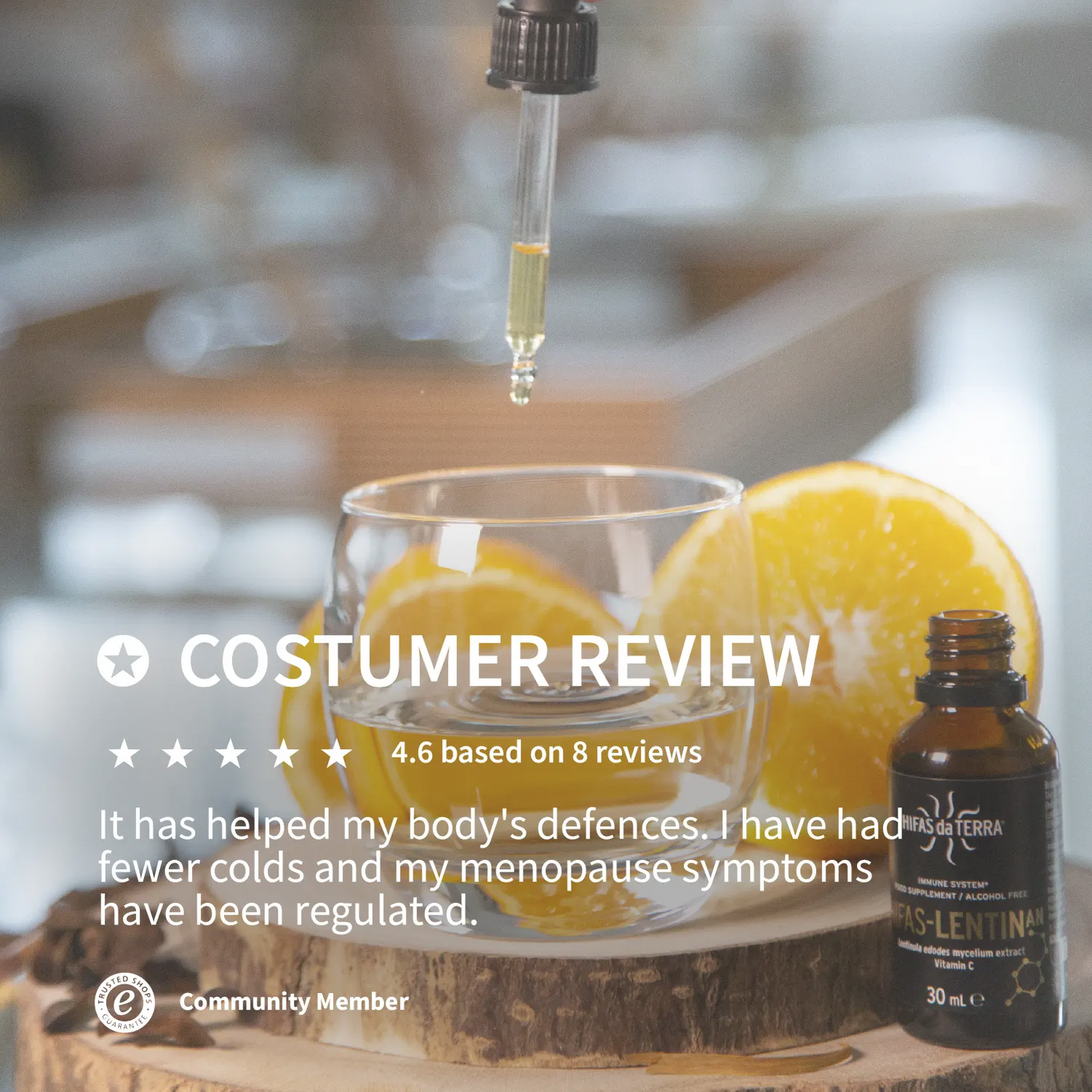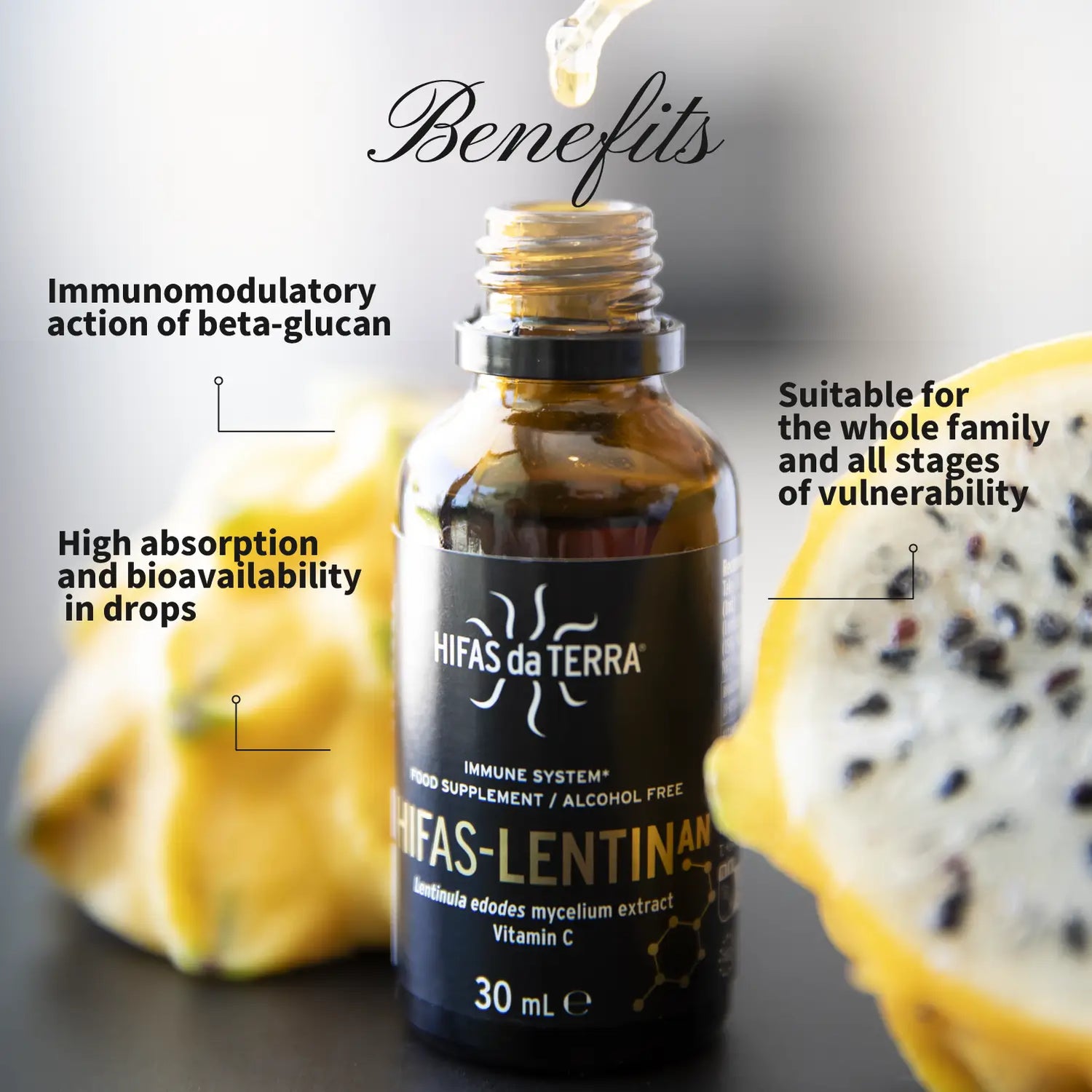HIFAS-Lentinan Drops is a liquid supplement based on Lentizumib®, an active, concentrated and powerful beta-glucan obtained from Shiitake (Lentinula edodes). EASY-TO-TAKE LIQUID FORM. Alcohol-free.